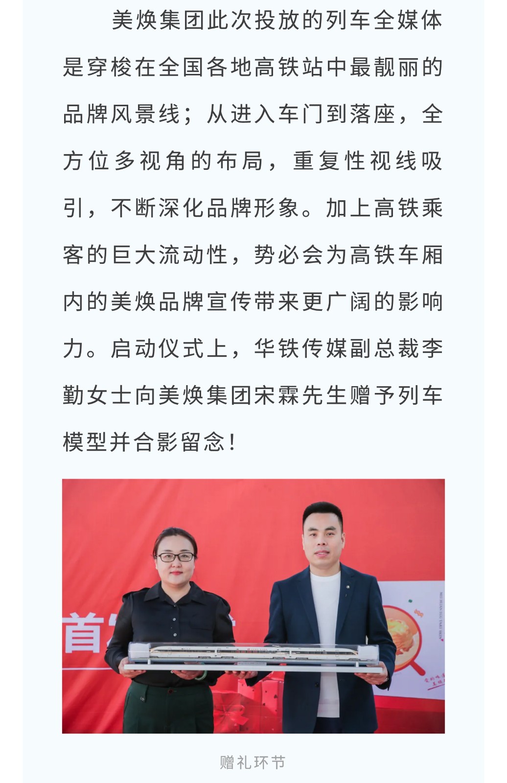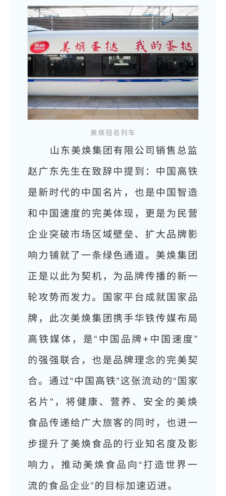 美煥冠名高鐵列車乘風出發,踏上品牌提速之旅美煥冠名高鐵列車乘風出發,踏上品牌提速之旅